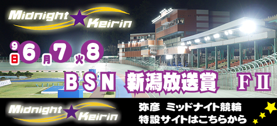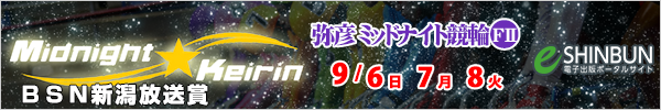 弥彦ミッドナイト競輪、BSN新潟放送賞(9/6~8) 1R発走=20時50分 最終9R発走=23時30分