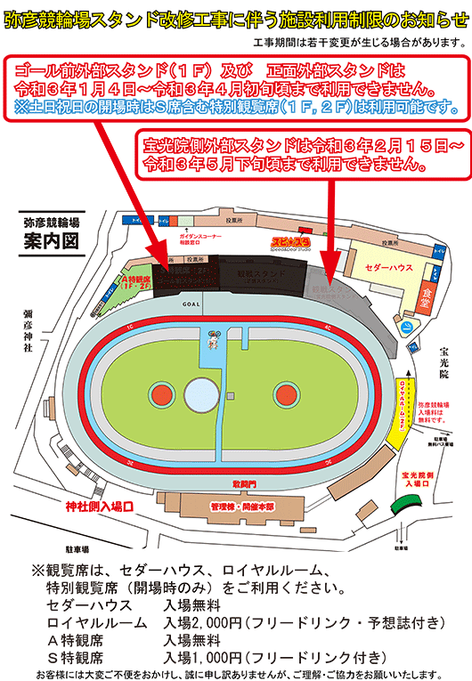 下記図面のとおり、改修工事中は外部スタンドは利用不可となります。