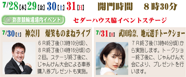 【弥彦記念】開設記念ふるさとカップ(7/28~31)イベント、ファンサービスのお知らせ