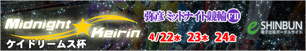 ケイドリームス杯(ミッドナイト・4/22~24)eーSHINBUN特設サイト開設のお知らせ 4月 19, 2026 | information 弥彦ミッドナイト競輪、ケイドリームス杯(4/22~24)の開催期間中、 eーSHINBUN特設サイトを開設します。 こちらのリンクより、ご利用くだい。