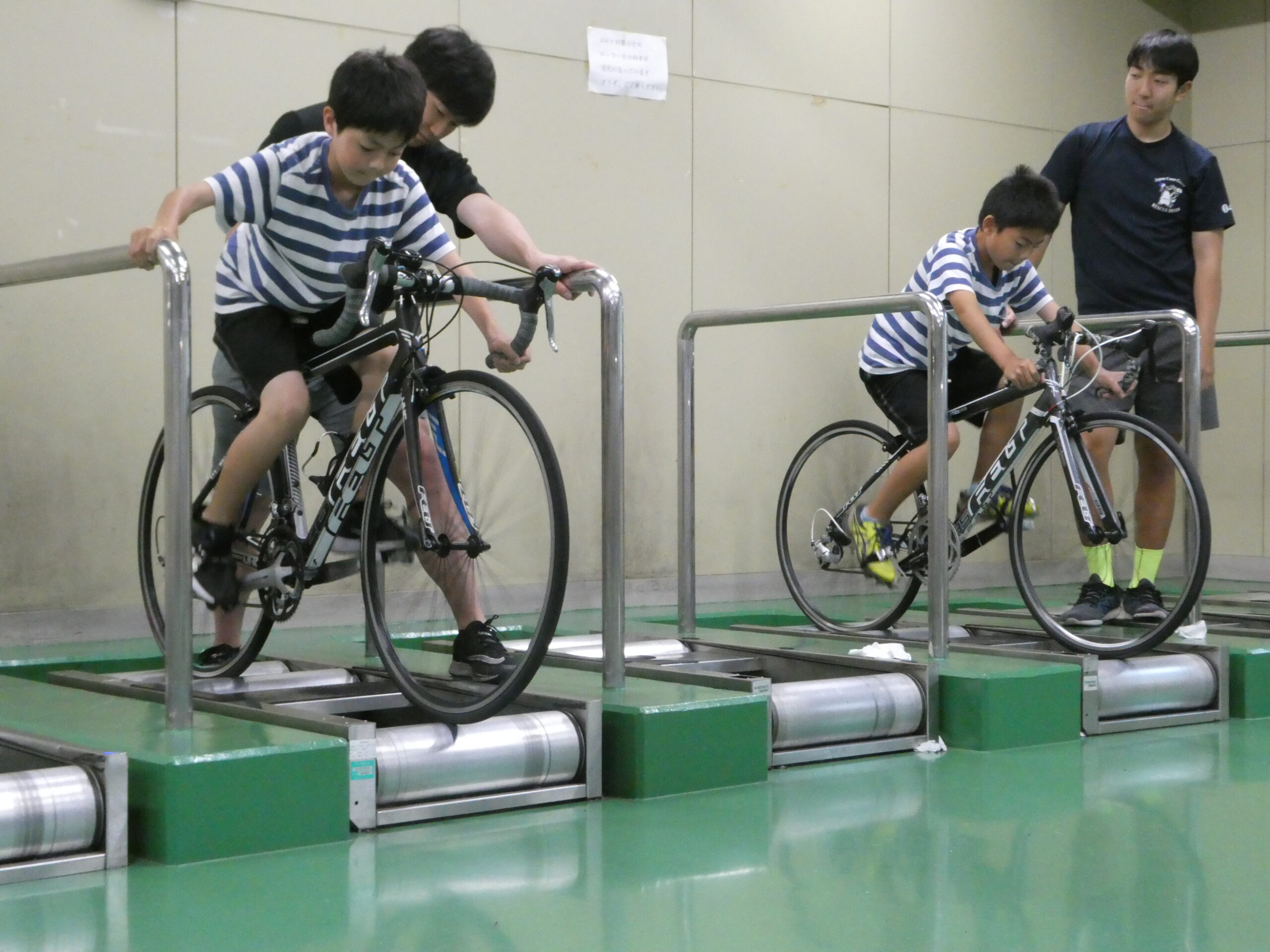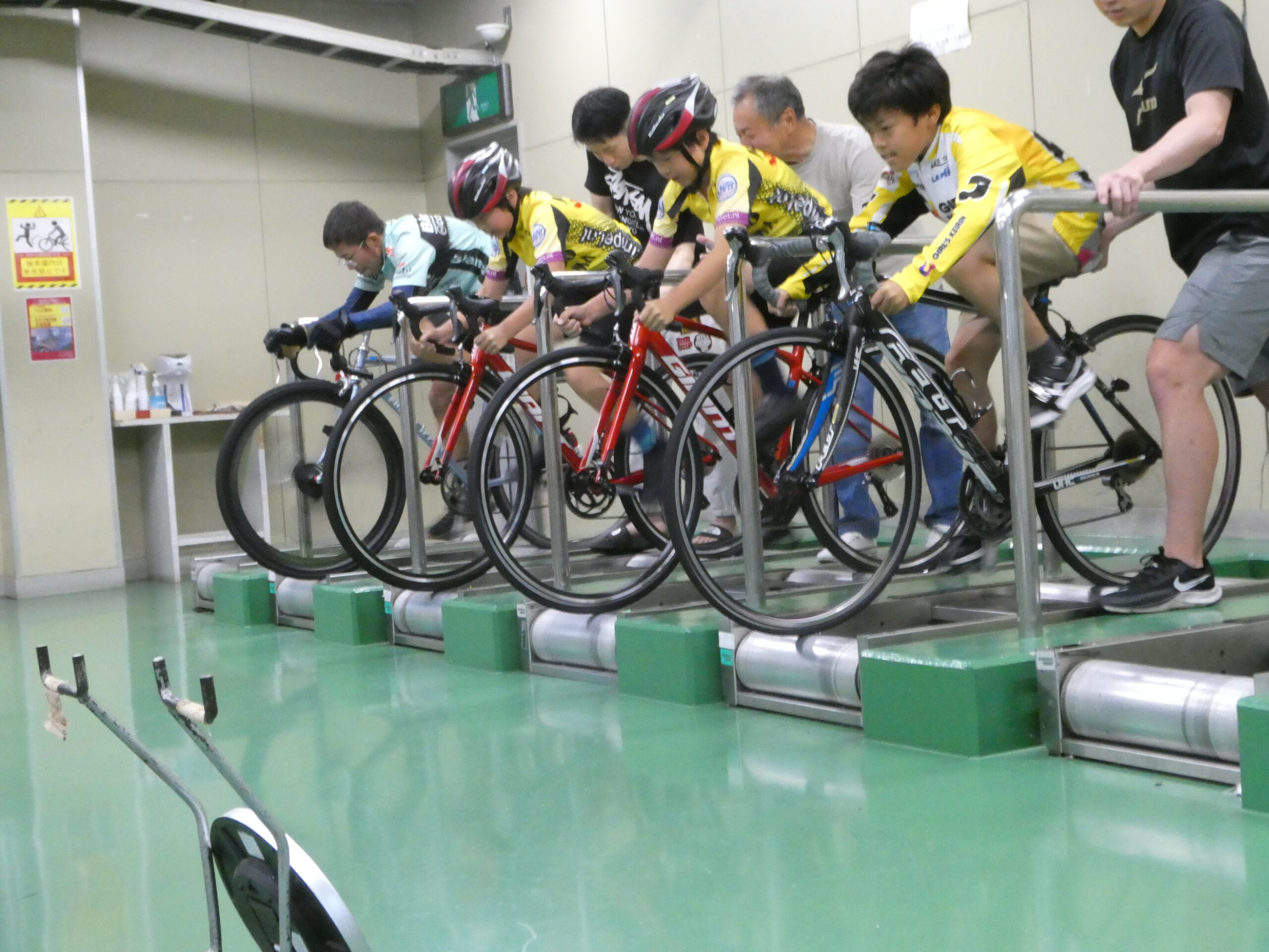 今年度6回目のフレンドリークラス練習会を、6月23日(日)に開催しました! 前回の練習会に引き続き雨が降り続く天気であったため、室内での練習となりました 😥 屋内でローラーを使用した練習を行い自転車を楽しんでいる様子がみられました! 新規の方や常連の方、親子連れの方など11名の方が参加してくれました。足元の悪いなかご参加いただきありがとうございました😀