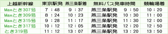 | ◆東京方面からのアクセス例(JR上越新幹線・燕三条駅下車→無料バス利用)