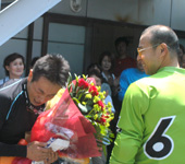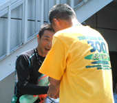 1984年5月13日の弥彦競輪でデビューした小林選手。同年10月の富山競輪で初優勝を飾り、通算の優勝回数は12回。全盛期は特別競輪でも活躍して、233の勝ち星を積み重ねました。 弥彦競輪場には、小林選手への感謝を伝えようと、多くの新潟県選手が集まり、現役最後のレースを終えた小林選手には山崎登選手、松本一成選手らから花束が贈呈されました。 レース後に、小林選手にお話を伺いました。 -急な引退のように感じますが- 引退を意識し始めたのは去年の中旬ぐらい。練習しても成績が残せなくなって。26年3カ月の選手生活でしたけど、もう気力、命運ともに尽きたと感じました。 -思い出に残っているレースは?- やっぱり地元の弥彦での競走ですね。弥彦でのデビュー戦、弥彦記念での優勝、そして、第1回ふるさとダービーの順位決定戦であの中野浩一に先着したレースが強く心に残っています。 -今後は?- 直前に会社が決まって、会社員として第2の人生をはじめます。僕は競輪選手は現代の侍だと思っています。その気持ちで第2の人生も頑張っていきたい。でも、選手は引退しますけど、自分がやってるブログ「小林昭二の毎日がお祭りだ」で、ファンの側から競輪をみていきます。僕は競輪が大好きですから。 -最後にファンに一言- ファンの方には感謝の気持ちしかありません。ファン、そしてよき先輩に支えられて、悔いのない競輪人生を送れました。いい後輩にも支えられたけど、中には現代の侍魂に欠ける後輩もいたんで、彼らにはもっと頑張ってほしいね(笑) ※小林選手の希望により、引退セレモニー等は行わず、引退の発表がレース後となりました。ご了承ください。 |
