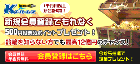 弥彦競輪でも前開催よりスタートした「Kドリーム」が現在、「新規会員登録キャンペーン」を実施しています。