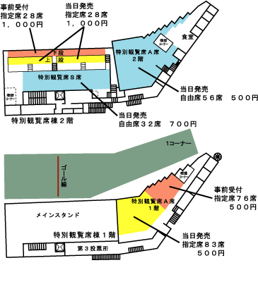 ※当日発売分の、S席自由席全席とA席2階自由席の一部はレースが見えにくくなります。