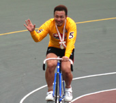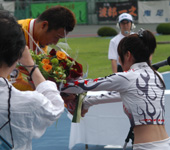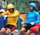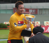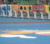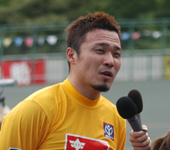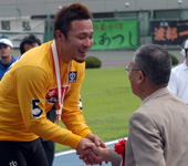 2009年7月 ふるさとカップ決勝 7月 15, 2009 | information 写真で振り返る 弥彦記念ふるさとカップ決勝 2009年7月15日 ファイナリスト9人の登場を 静かに待つ発走機。 深々とバンクに一礼して、 1番車の渡邉晴智が入場。 「地元Vだ 阿部康雄」。地 元の期待を背負って、阿部 がバンクに入場。 レースへの集中力を高める 加藤慎平(左)と阿部。 2009年の弥彦記念・決勝 がスタート。 金子貴志、加藤の中部ライ ンが、誘導員を追った。 赤板前。稲垣裕之、村上博 幸、阿部康雄が上昇。 打鐘前に、稲垣が誘導員を 交わして先頭へ。 最終ホーム前。稲垣を、岡 村潤、渡邉晴智の静岡勢 がたたきに出る。 阿部は渡邉に決められ、苦 しい展開となった。 稲垣が踏ん張り先頭をキ ープしたが、金子、加藤の まくりが襲い掛かる。 最終4角。まくった金子、加 藤に中川誠一郎が続く。優 勝争いは、この3人に絞ら れた。 粘る金子を、加藤がゴール 前できっちり交わす。 ファンの声援に応える加藤。 見事に完全Vを決めた。 優勝者インタビューで、喜 びを話す加藤。 弥彦村・大谷村長より、ふ るさとカップの贈呈。 メダルの授与。 すぴRits・成田栞さんから は、花束のプレゼント。 加藤のウイニングラン。ス タンドからの大声援に応え る。 ふるさとカップ決勝。1着・加 藤慎平、2着・金子貴志、3 着・中川誠一郎。 PHOTレポートTOPへ