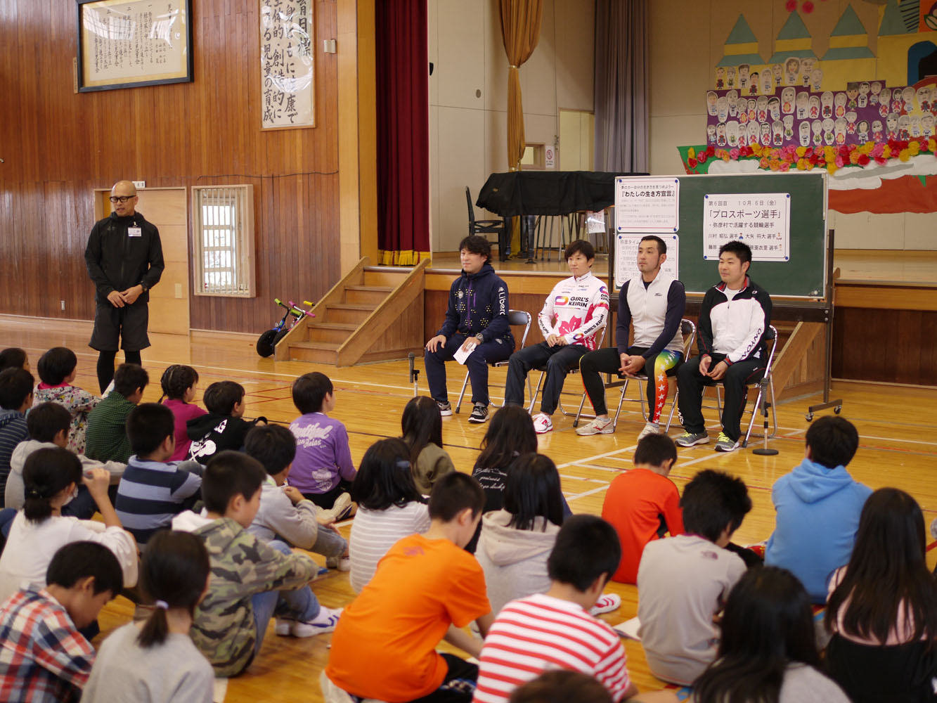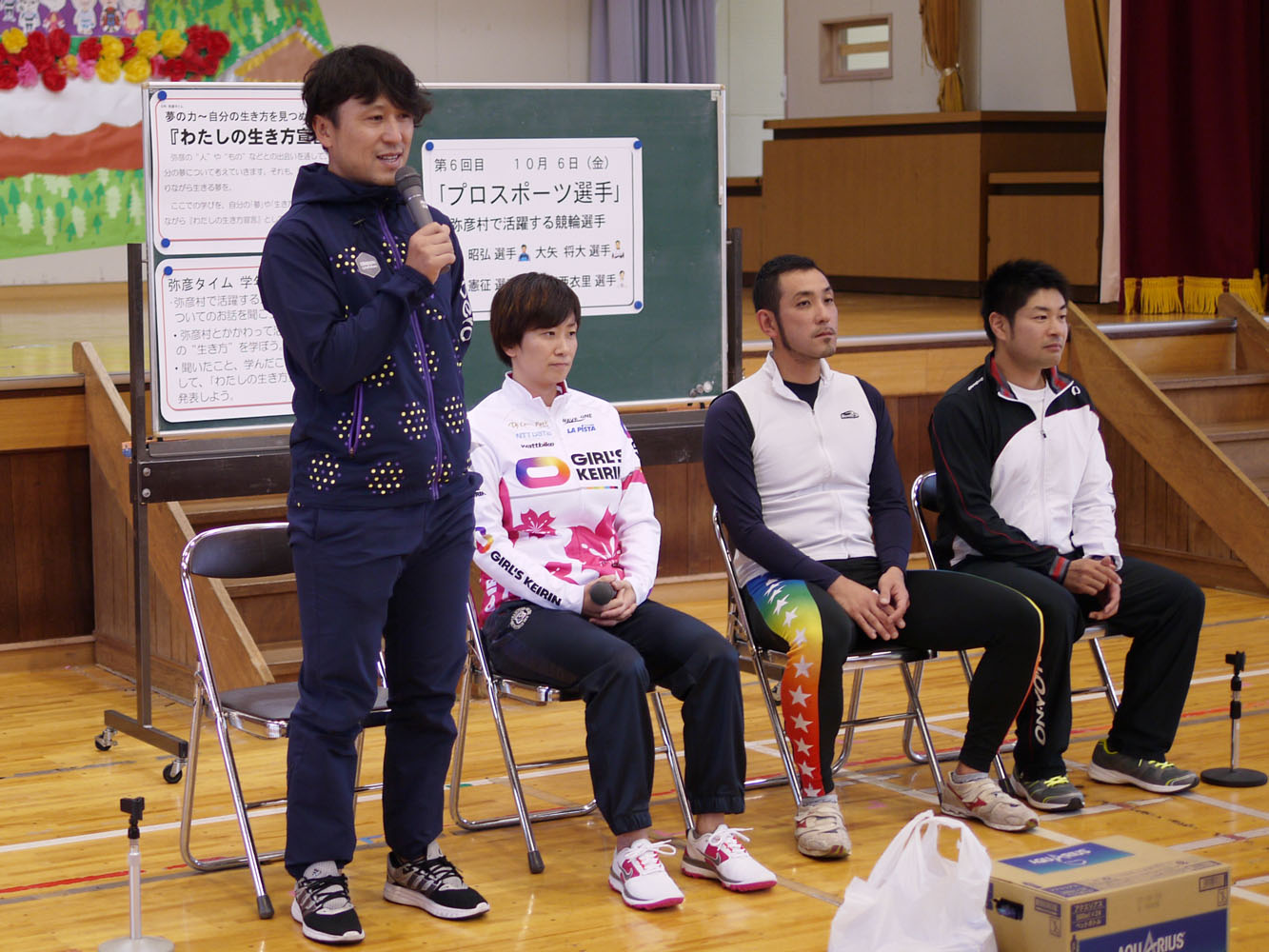 10月6日、弥彦小学校の体育館において、6年生の総合学習の特別授業として、
