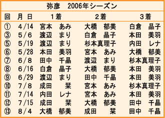 2006年第3戦。 誘導員が登場。大役は、今年4月に加入の青瀬千里さん。 今期は3勝。勝ち頭は渡辺まりさん。