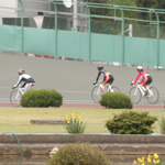 第3戦を制したのは紫の9番、渡辺まりさん。やっぱ、彼女は強い。誘導員の青瀬さんが退避したあと、うまくペースを作って先行。最終バックから怒涛の勢いで白倉晶子さんがまくってきたが、一旦交わされながらも、二の足を使って差し返す。強えーな。