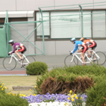 5月6日、弥彦競輪場。すぴRits第3戦。 ファンのみなさまの多くの要望にこたえ、ついに彼女達のレースにも「誘導員」が登場した。