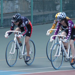慣れないだけあって、少し緊張気味の吉岡さんが鳴らした号砲でレースがスタート。誘導員の及川かれんさんを追ったレナ姫―杉本真理子さんを、早めに宮本あみ―白倉晶子さんが押さえて、残り1周半の鐘が鳴る。