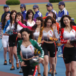土曜日だけあって、多くのファンの方が訪れてくれた弥彦競輪場。成田栞、内田レナ、杉本真理子さんの横断幕に加えて、今回は大橋郁美、本田美羽さんの横断幕も飾られる。ありがたいことです。