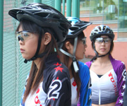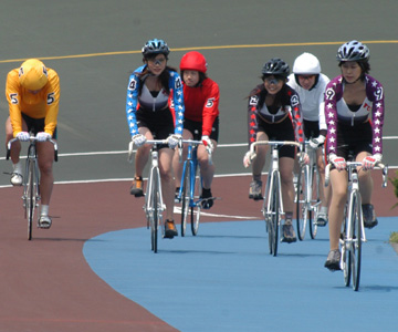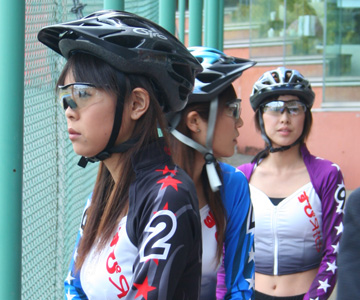 大橋、本田、渡辺さんが弥彦バンクへ入場