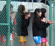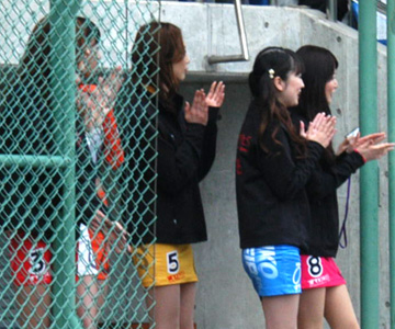 バンク横で卒業レースを見守ったメンバー。涙の拍手。