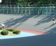そんな中、「素人脚自慢vsすぴRits」第3戦が行われた。すぴRitsが勝てば1万円の車券購入券がゲットできるだけあって、参加された方は気合十分。第2戦に登場した宗村さん(サッカー経験者)が白倉さんに圧勝。見事に車券購入券を獲得した。 対戦の模様は、以下の写真でどうぞ。