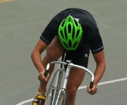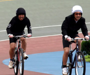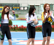 すぴRitsチーム。田中、成田、宮本さんの順で、バンクをそれぞれ1周マジモガキ。スタート前は、いつもよりリラックスムード。