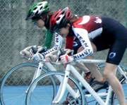 残り2周。畑中さん(外)、山下さん(内)の走り。