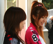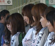 | 「高速誘導で」。及川かれんさんの誘導で、スタンド前を通過。 |