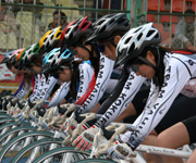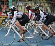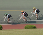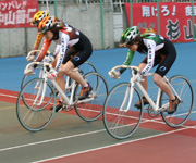 残り1周。山下、大石さんの小倉ラインが先行して、宮本、白倉、田中千晶さんのラインが3番手以降に割り込む。 |