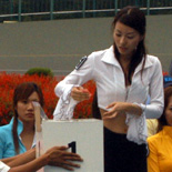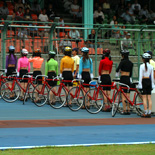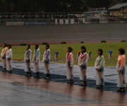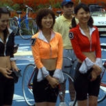 弥彦競輪7R終了後。大勢のファンに迎えられて、すぴRitsのメンバーが登場する。日曜日のせいか、第4戦となってファンの方々に覚えていただいたせいか、声援がいつもにも増して大きく聞こえる。