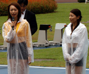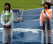 弥彦競輪4R終了後。雨カッパを羽織ったすぴRitsのメンバーが、特別選手紹介のため、弥彦バンクに登場する。「雨は初めてなんで…」と、不安そうなコメントを渡辺まり、大橋郁美、成田栞選手が話したが、その頃から空が明るくなり始める。