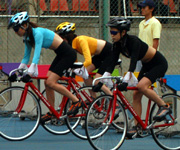 後方から成田選手が一気のカマシ先行。「陸上で鍛えた彼女が一番強いんじゃない」。自分のレースを終えて観戦していた松田桂一選手が言うように、猛スピードで先頭に立つ。懸命に田中選手が成田選手を追いかけて、切り替えた渡辺選手が田中選手に続く。
