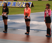 天気予報は雨だったが、当然のように「すぴRits」のレース前に雨が止む。雲の切れ間から、太陽の光が注ぐ弥彦競輪場。勤労感謝の日。多くのファンがスタンドを埋めた中、すぴRitsのメンバー9人が、午後2時過ぎ、発走機に並んだ。