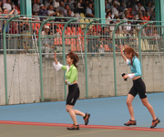 まずは8番の杉本真理子選手が飛び出し、7番・小林梓選手、2番・松島艶子選手が続く。